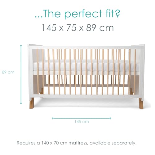 - Converts to a Toddler Bed: Transition seamlessly from cot to toddler bed by removing both sides. This innovative feature transforms the cot into a safe and secure environment for your growing child. The full toddler bed set-up ensures that the transition is smooth, providing familiarity and comfort.The cot bed requires a 140 x 70 cm mattress, available separately.