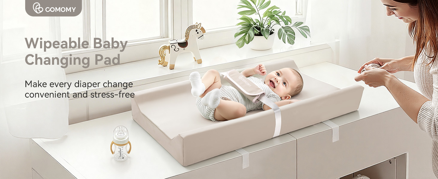 COMOMY Vegan Leather Baby Changing Mat with Waterproof and Soft PU Cover