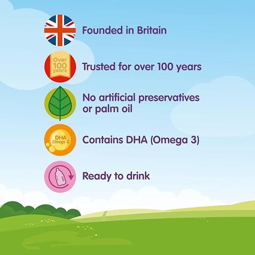Water, Skimmed MILK, LACTOSE (from MILK), Vegetable Oils (Palm Oil, Coconut Oil, Rapeseed Oil, Sunflower Oil, High Oleic Sunflower Oil), Galacto- Oligosaccharides (GOS) (from MILK), Whey Protein (from MILK), Emulsifiers (Mono- & Diglycerides of Fatty Acids, SOY Lecithin), Fructo-Oligosaccharidles (FOS), FISH Oil, Calcium Phosphate, Acidity Regulator (Citric Acid), Potassium Chloride, Vitamin C, Sodium Chloride, Choline Chloride, Sodium Hydrogen Carbonate, Potassium Hydrogen Carbonate, Potassium Dihydrogen Phosphate, L-Cysteine Hydrochloride, Calcium Hydroxide, Magnesium Oxide, Inositol, Taurine, Iron, Lactate, Potassium Hydroxide, L-Carnitine, Zinc Sulphate, Vitamin A, Uridine 5-Monophosphate Sodium Salt, Cytidine 5′-Monophosphate, Pantothenic Acid, Adenosine 5′-Monophosphate, Inosine 5′-Monophosphate Sodium Salt, Niacin, Vitamin E, Guanosine 5′-Monophosphate Sodium Salt, Riboflavin, Thiamin, Copper Sulphate, Vitamin B6, Sodium Selenite, Folic Acid, Vitamin K1, Potassium Iodide, Manganese Sulphate, Vitamin D3, Biotin, Vitamin B2