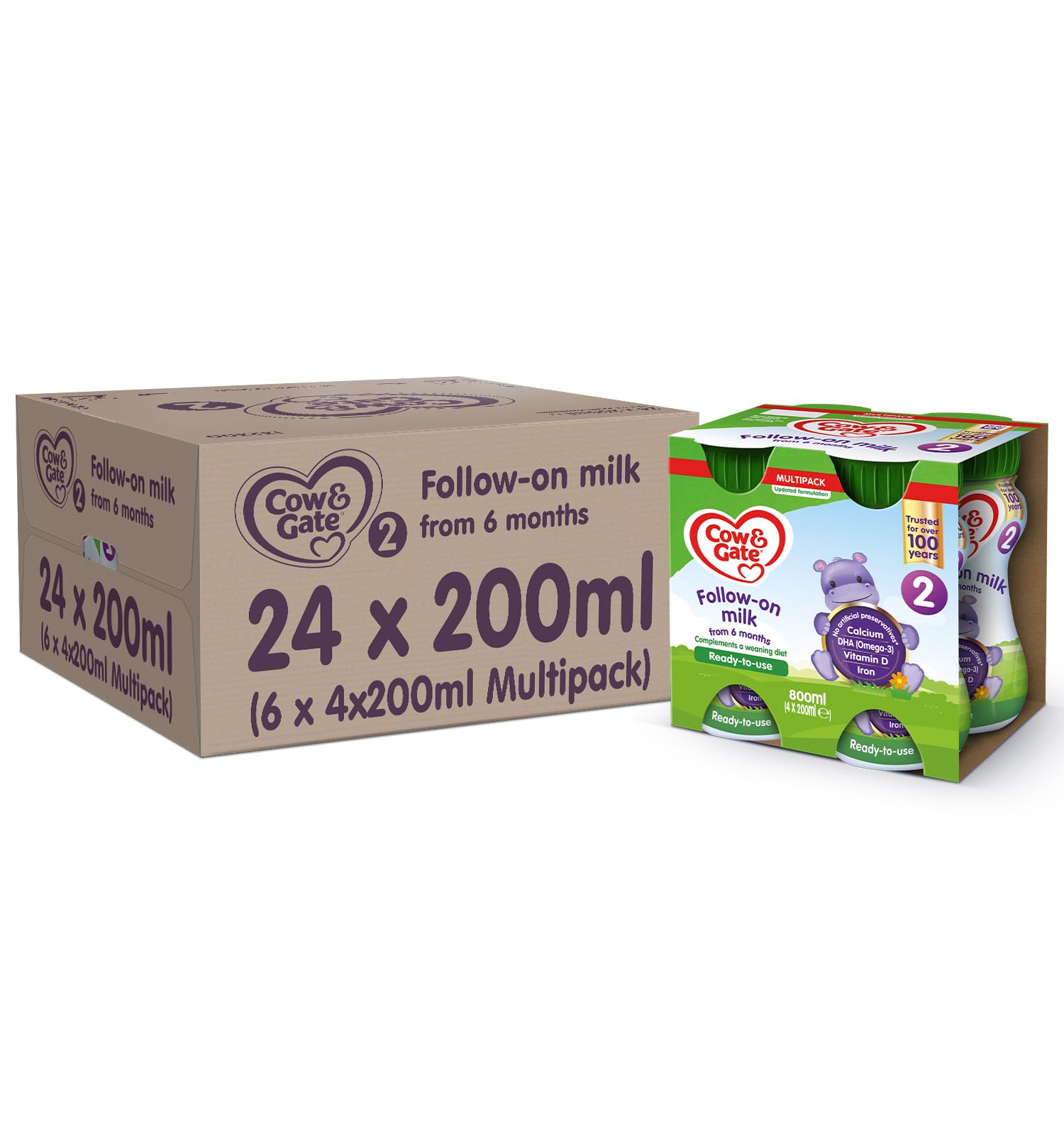 Cow & Gate 2 Follow On Baby Milk Ready to Use Liquid Formula, 6-12 Months, 4x200ml (Pack of 24)