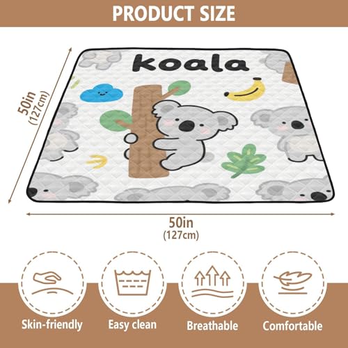 Cute Cartoon Grey Koala Large Sturdy Baby Care Play mat for Indoor Outdoor 1-Piecing Foldable Baby Tummy time Play mat for Babies Infants Toddlers, 50'' x 50''alfombra de juego