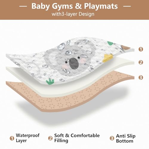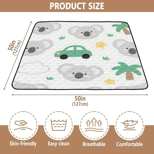 Cute Cartoon Grey Koala Large Stylish Baby Care Play mat for Floor Portable Foldable Infant Play Activity Mat for Babies Infants Toddlers, 50'' x 50''tapete de gimnasio para