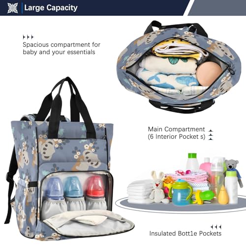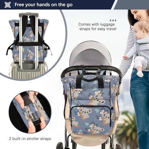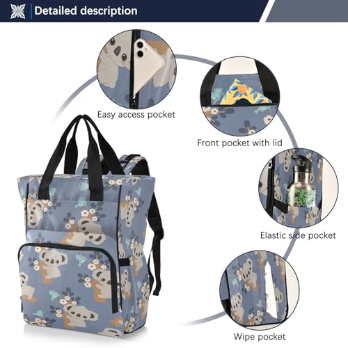 Diaper Bags For Girls Multifunction Waterproof Fashion Diaper Bag For Baby Care for Shopping Hiking Traveling Cute Cartoon Koala Floral Patternwallpape