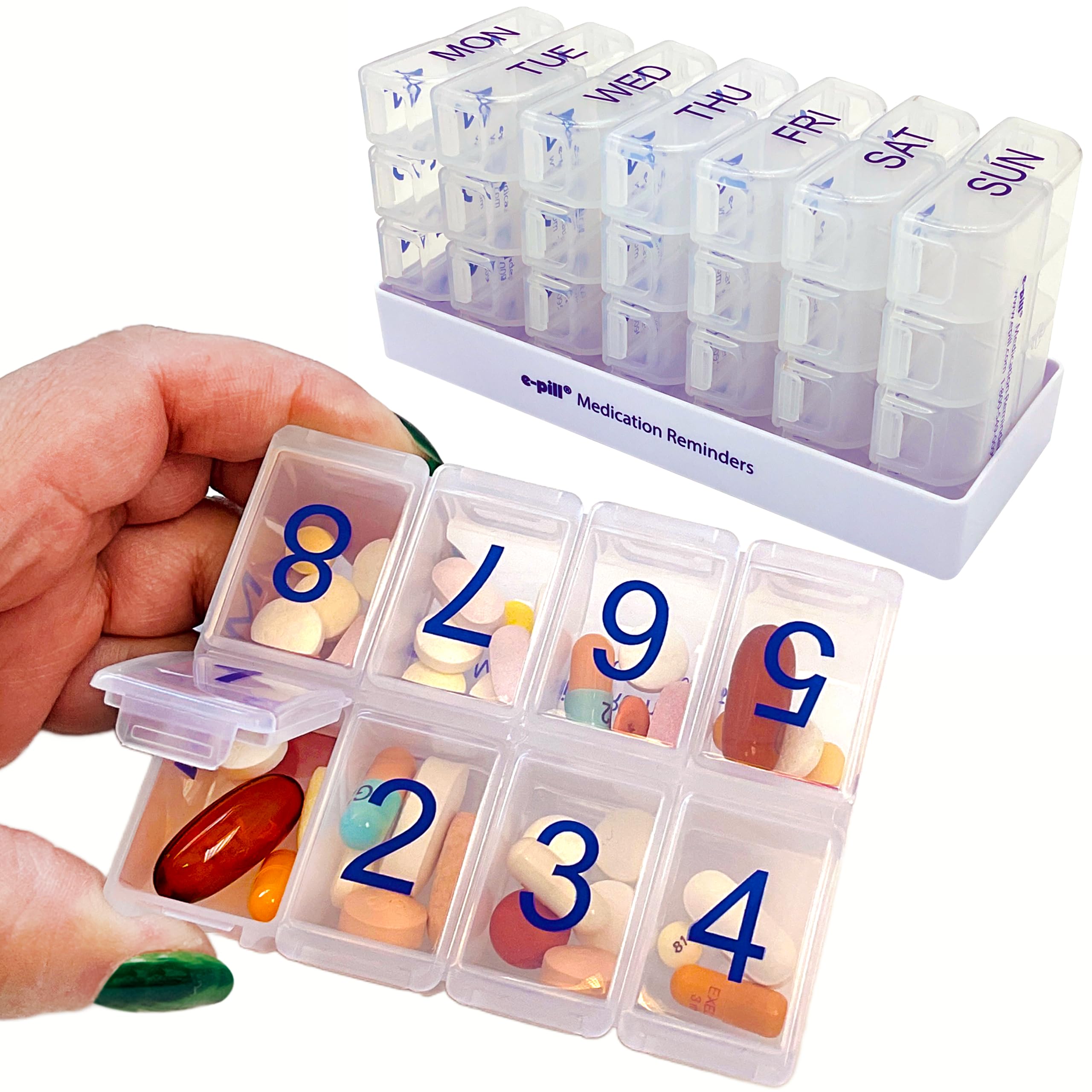 e-Pill 8 Times a Day x 7 Day Large Weekly Pill Organizer, Vitamin, and Medicine