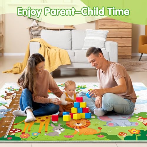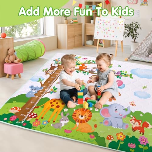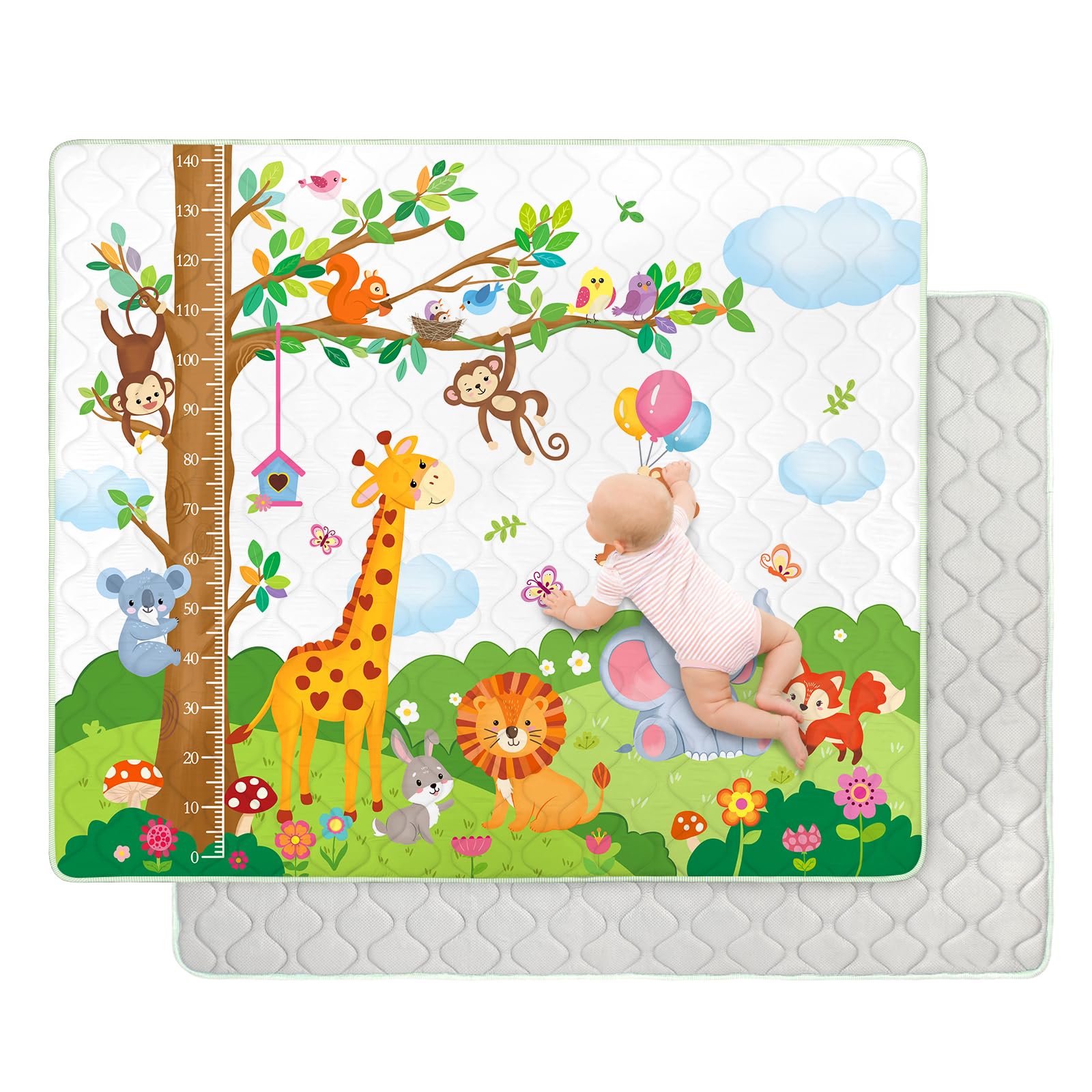 - Vivid Pattern & Best Gift: The playmat is designed with a height chart and adorable animal prints, which not only provides a safe area for babies crawling and walking, but also makes it convenient for parents to record child's growth. As an essential item for any family with young children, it also makes a delightful gift for birthdays, Christmas, baby showers, and more!