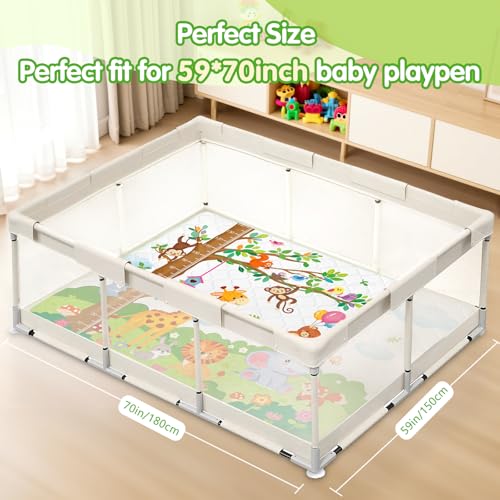 Extra Large Baby Play Mats for Floor,150x180cm Foldable Playmat for Babies Toddlers,Thick Machine Washable Playpen Mat Pad,Soft Non-Slip Activity Mat for Crawling & Playing & Tummy Time,Animal