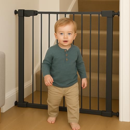 For Your Little One Pressure Fit Safety Stair Gate – No Screws Needed | One-Hand Opening | Secure Baby & Pet Gate for Stairs, Doorways & Hallways (Grey, 75-86 cm Door Width)