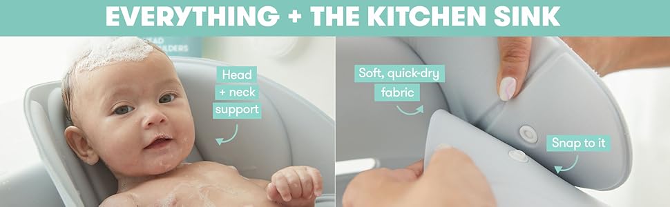 - EASY SETUP + CLEANING: Two snaps and you're ready to bathe. Quick dry cushion is machine washable and hangs to dry.