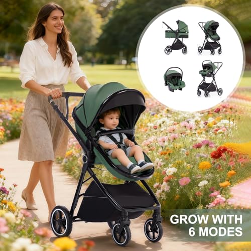 Gcarebb 3 in 1 Prams Travel System, Pushchair with Height Adjustable Handle