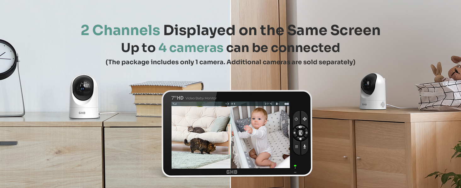 - Easy to Expand Your Setup: Connect up to 4 cameras to monitor multiple children or rooms with ease, and view 2 camera feeds at once in split-screen mode. (Package includes 1 camera; additional units are sold separately)