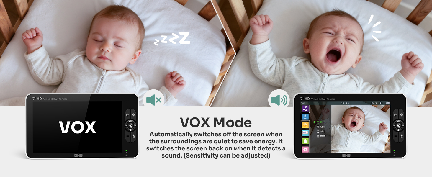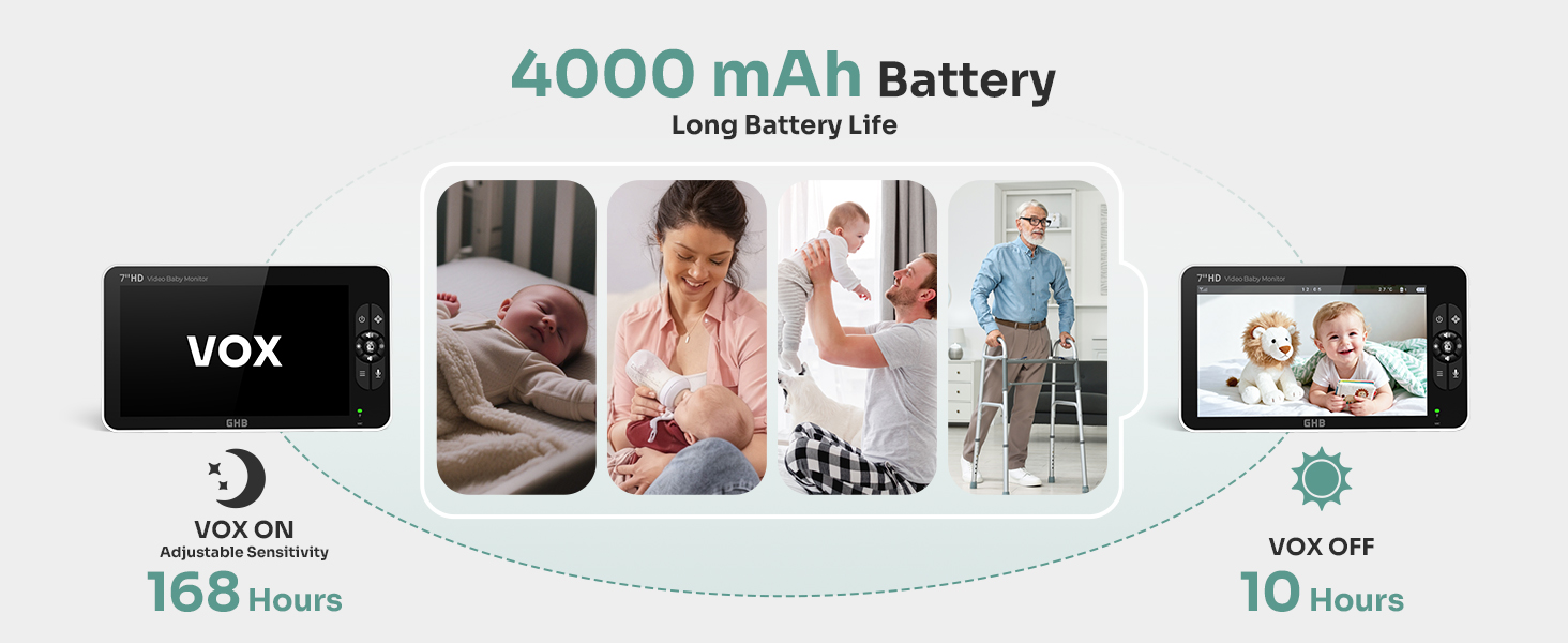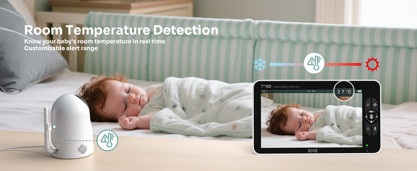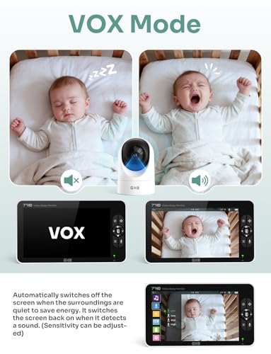 GHB 7″ Baby Monitor with Camera and Night Vision, HD Display with Remote PTZ, VOX Mode, 2-Way Talk, Temperature Monitoring & 8 Lullabies, No App or Wi-Fi Needed