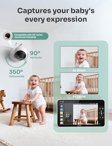- 360° Coverage with No Blind Spots: the baby camera monitor Pan 350° horizontally and tilt 90° vertically for a complete view of your baby's room, giving you total peace of mind