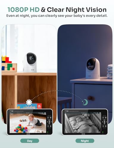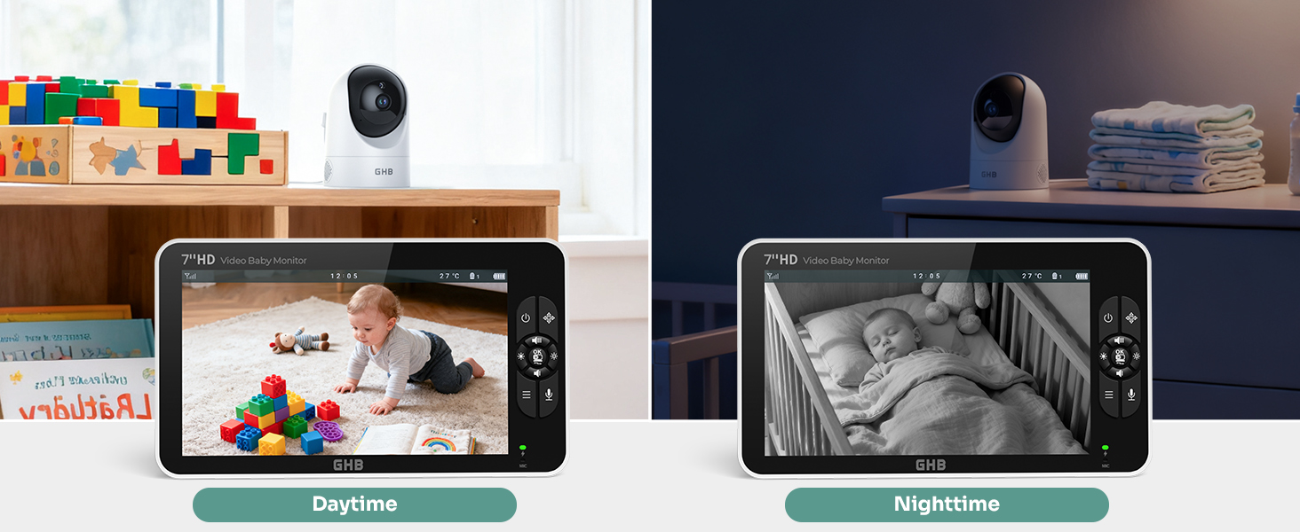 GHB 7″ Baby Monitor with Camera and Night Vision, HD Display with Remote PTZ