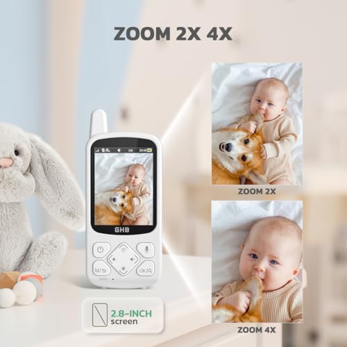 GHB Baby Monitor with Camera and Night Vision, 2.8'' 720P HD Video Baby Monitor, 2000mAh, IPS Screen, VOX Mode, 2-Way Audio, Temperature Alert, 8 Lullabies