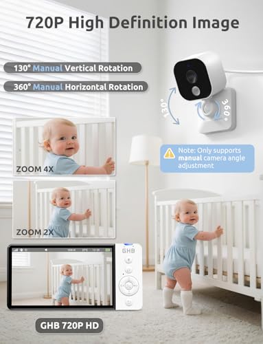GHB Baby Monitor with Camera and Night Vision 5'' 720P HD 5000mAh Video