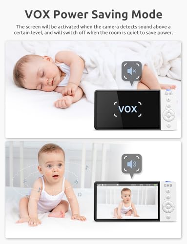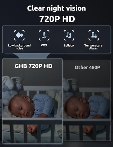 GHB Baby Monitor with Camera and Night Vision 5'' 720P HD 5000mAh Video Baby Monitor Camera IPS Screen, VOX Mode, 2-Way Audio, Temperature Alert, 8 Lullabies