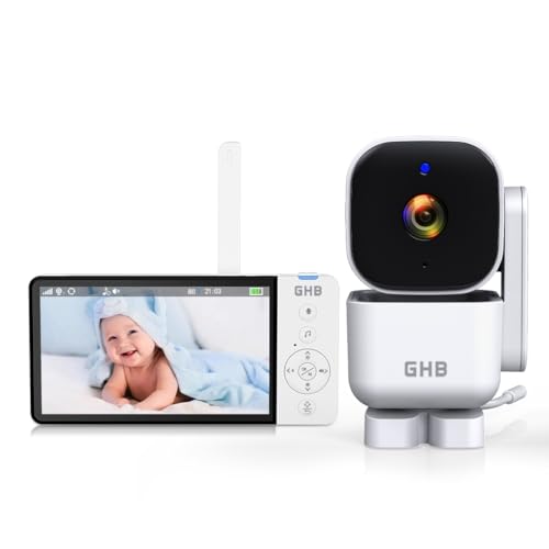 GHB Baby Monitor with Camera and Night Vision 5'' HD 720P, Night Vision, Pan-Tilt, 2-Way Talk, Room Temperature & Lullaby for Baby Nusery Room