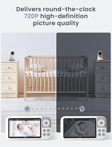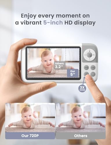 - Crystal-Clear HD Display: Enjoy a 5-inch IPS screen with 720P resolution and a 180° wide viewing angle, delivering sharp, vibrant visuals to capture every precious moment of your baby’s day