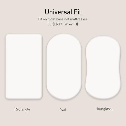 - Universal 2-Pack Set: These versatile baby bassinet sheets measure 33" x 17" with a 4" depth, fitting a variety of mattress shapes including hourglass, oval, and rectangle. You get two premium bassinet sheets, making it convenient for changes and ensuring you always have a fresh sheet ready
