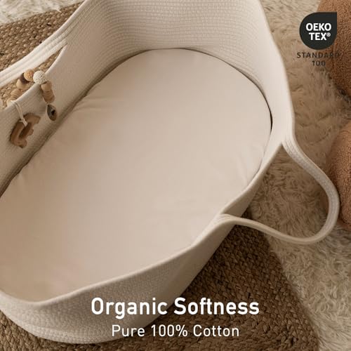 - Ultra-Soft Organic Cotton: Wrap your little one in the finest sleep with our 100% organic cotton bassinet sheets. Ultra-soft, cozy and breathable, these bassinet fitted sheets are gentle on your baby's delicate skin, ensuring a comfortable and restful night's sleep. Rest assured, every product meets the OEKO-TEX Standard 100 and is safe for babies