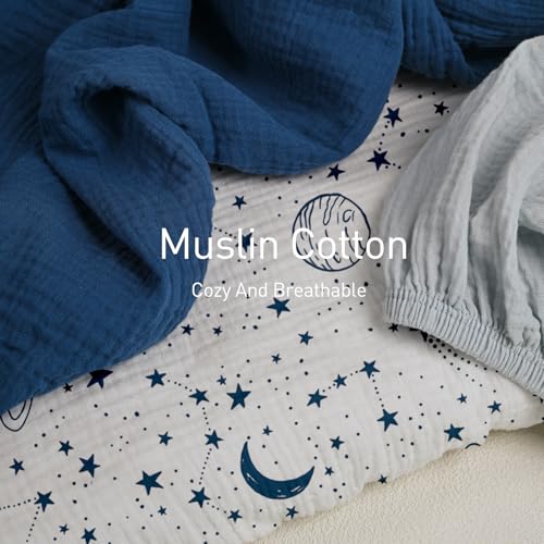 Gllquen Baby Muslin Bassinet Sheets 3 Pack, Breathable Elastic Cozy Fitted Cotton Bassinet Mattress Sheet for Baby Boy Girls, Fit for Hourglass Oval Rectangular Cradle Pad Sheets 33″x17″ (Blue)