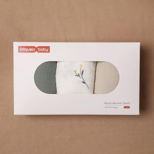 - ❤MUSLIN COTTON- Are you looking for the perfect baby bed sheets? Look no further than our Gllquen Baby bassinet sheets! Made with 100% muslin cotton, baby sheets has excellent air permeability and moisture-absorbing properties that keep your baby's skin dry and comfy, providing comfortable care and a good night's sleep.