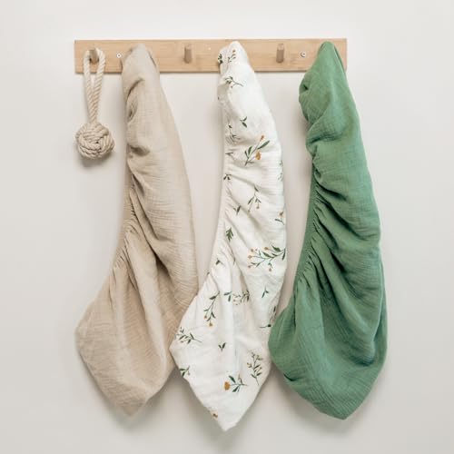 Gllquen Baby Muslin Bassinet Sheets 3 Pack, Breathable Elastic Cozy Fitted Cotton Bassinet Mattress Sheet for Baby Boy Girls, Fit for Hourglass Oval Rectangular Cradle Pad Sheets 33″x17″ (Green)