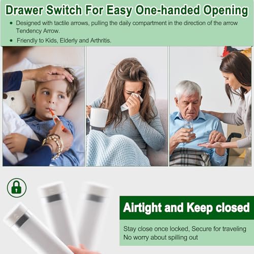 - 【Good Sealing】Each pill box is printed with the week's date on the box to make it easy to distinguish, The weekly pill organizer is handy to push out, you can slide out one compartment at a time, It will suitable for the forgetful or arthritis people, easy to open with one hand.