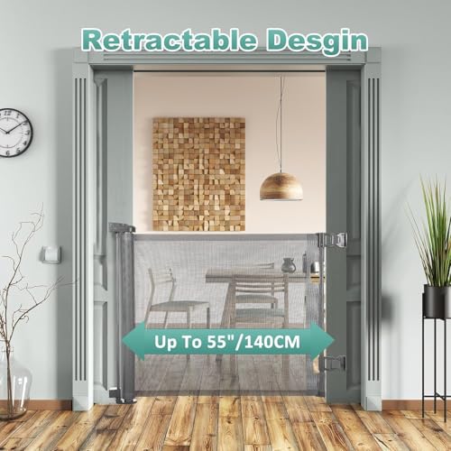 GREENSAPPIRE Retractable Baby Gate 140cm Wide x 86cm Tall, Extra Tall Mesh Safety Gate for Baby & Pets, One-Handed Operation, Child & Dog Gate for Stairs, Doorways, Hallways, Indoor/Outdoor Use, Grey