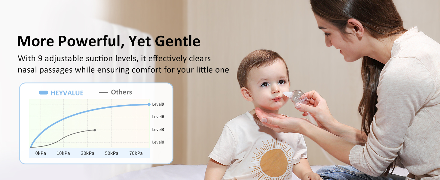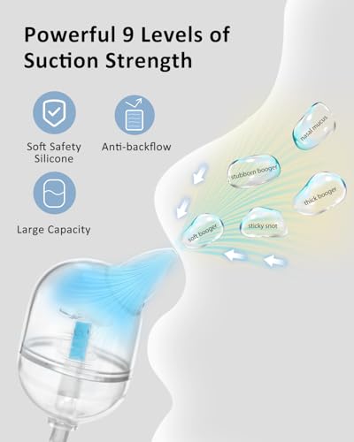 - Powerful Yet Gentle Cleaning – 9 adjustable suction levels effectively clear both runny and dry mucus, letting you choose the safest and most comfortable setting for newborns, infants or toddlers.