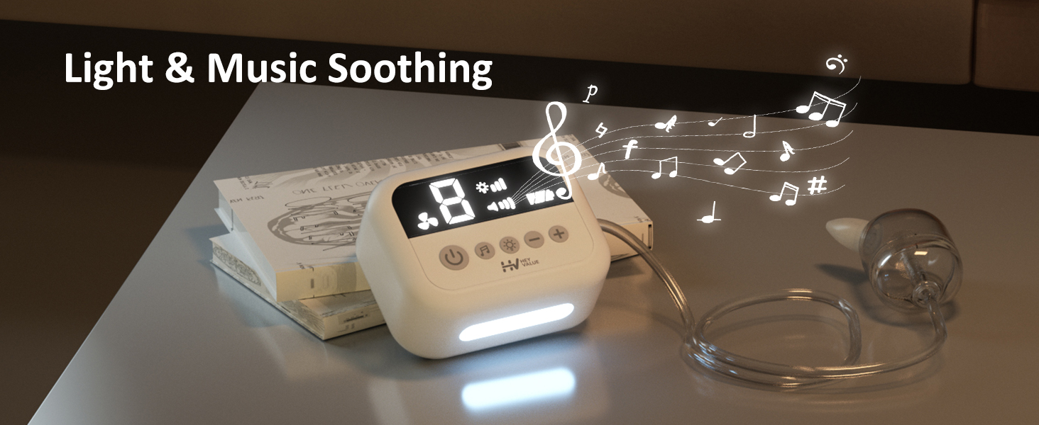 Merchant video9 Strong suction power: Effectively removes blockages. Type-C charging port. Detachable parts: Easy to clean and hygienic. Gentle light: Suitable for nighttime feeding. Soothing music. Soft nozzle: Safe and gentle on nasal mucosa. Lightweight and portable for on-the-go use.