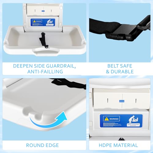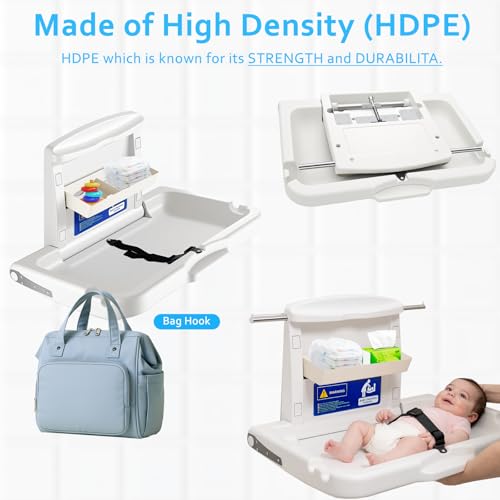 - Durable Material: Made of High-Density Polyethylene(HDPE), it can support up to 20KG. The baby changing station surface is easy to wipe clean; a simple swipe with a damp cloth effortlessly removes stains, ensuring hygiene and cleanliness.