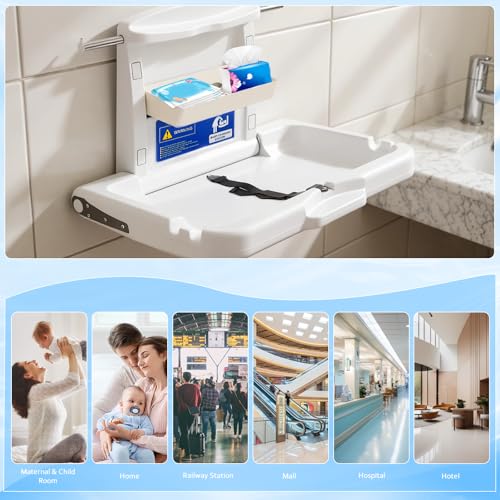 - Save space and be flexible: This baby changing unit adopts a folding design, which saves space and can be flexibly adapted to various public places, such as shopping malls, restaurants, airports, etc.