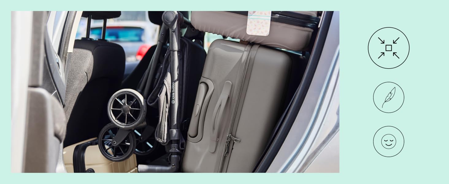 Compact 4.9kg fold fits car boots, buses, trains & overhead lockers*.