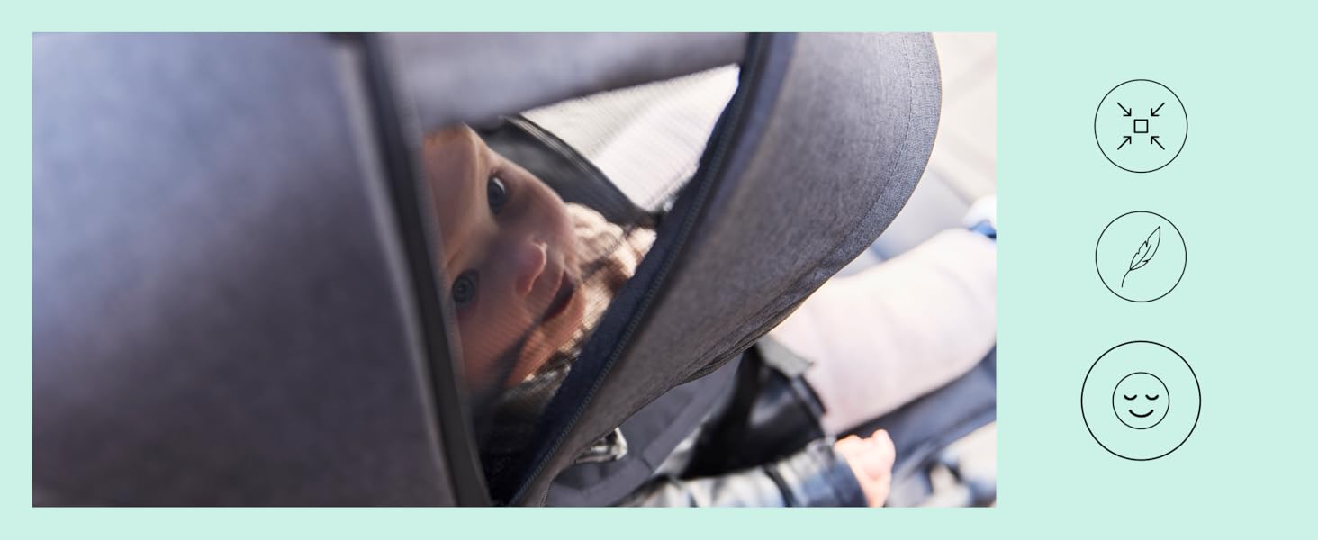 - UPF50+ Hood with Sun Visor – Protective, breathable hood includes a pop-out sun visor, ventilation panel, and a handy viewing window to keep your baby cool, safe, and in sight