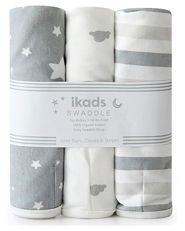 ikads Baby Swaddle Blanket 0-3 Months – 100% Breathable Organic Cotton Fabric – Baby Swaddle Wrap for New Born – Pack of 3 Baby Swaddles for Newborn with Hooks & Loop (Grey)