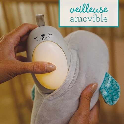 Infantino – Sweet Dreams Sound & Light Soother – Musical Seal Nightlight – Soft Plush with Light and Melodies – Relaxing – Seal Plush Toy – Easy to Clean – Baby Toy – OM+ – Grey – One Size