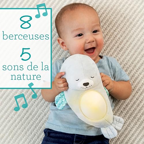 - RELAXING AND COMFORTING – This baby seal plush helps babies and toddlers feel safe and cozy at night with auto-off and sleep modes, a night light, and six melodies and four nature sounds.