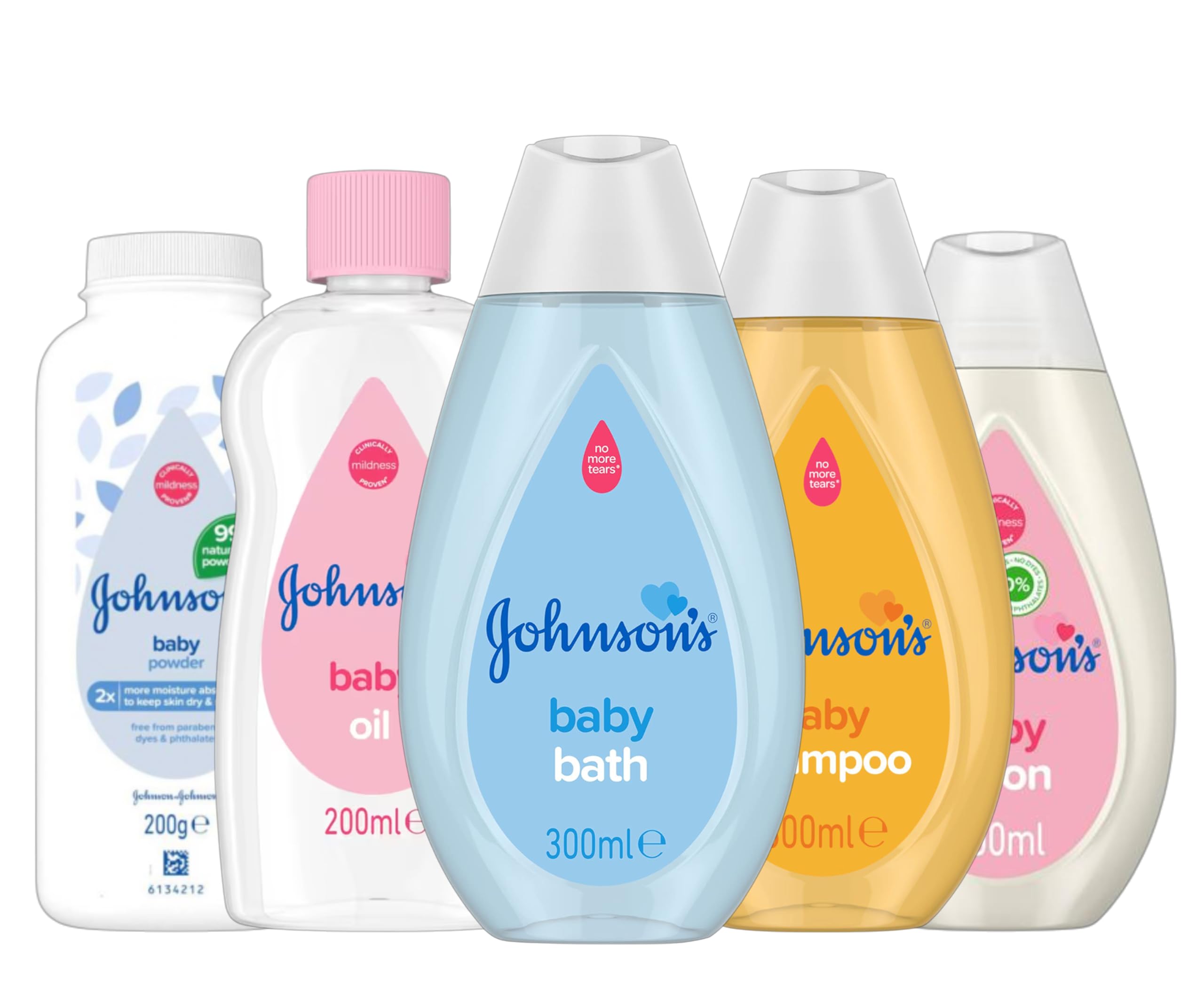 Johnson's Baby Care Bundle | Baby Powder 200g, Baby Oil 200ml, Baby Bath 300ml, Baby Shampoo 300ml & Baby Lotion 300ml | Gentle & Mild for Delicate Skin | 5 Pack
