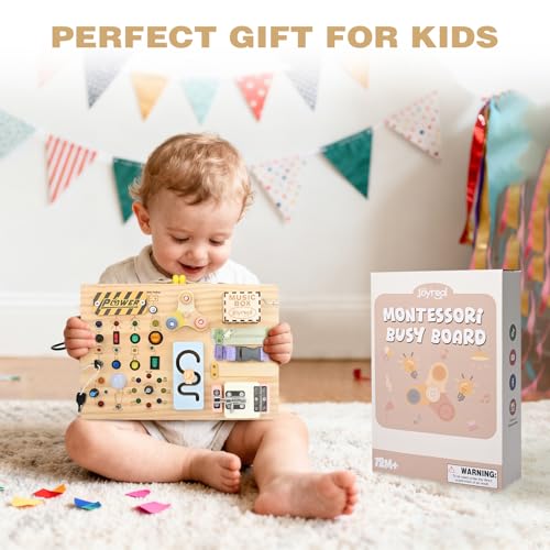 Joyreal Wooden Busy Board for Toddlers, Activity Montessori Toy for 1 2 3 Year