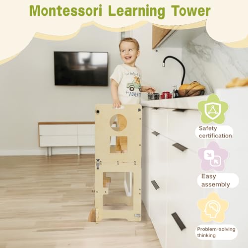 Karl home 3-in-1 Toddler Learning Tower, Wooden Kids Step Standing Stool