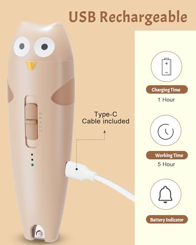 - Rechargeable & Multiple Settings: Lictin rechargeable baby nail trimmer set includes a USB-C cable for easy charging(adapter in not included) .With just a 1-hour charge, it provides up to 5 hours of use. The trimmer features a single button for controlling speed (high/low) and rotation (clockwise/counterclockwise), making it simple to operate. Its 360° all-round trimming and polishing function ensures a softer and smoother finish for both toenails and fingernails
