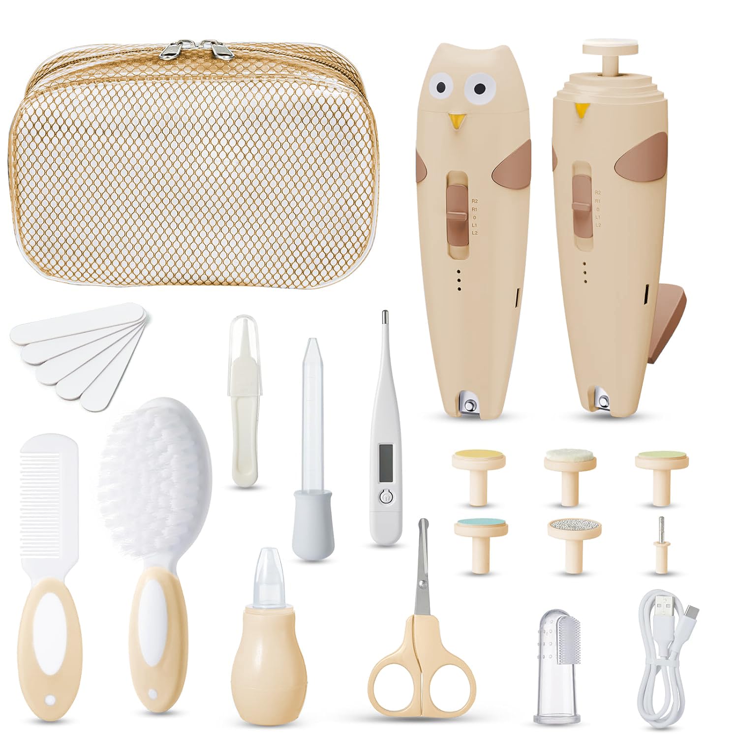 - 26 in 1 Baby Care Kit: Lictin baby healthcare and grooming kit is a portable and comprehensive set that includes electric nail trimmer, grinding heads, tweezers, drug feeder, baby finger toothbrush, baby brush, baby comb, nasal aspirator, nail files, round-tip scissors and convenient storage bag. BPA-free, it is a popular choice for baby shower gifts, birthdays, and Christmas presents. Perfect for home or travel