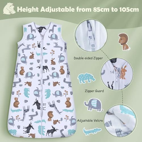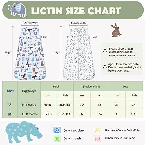 - ADJUSTABLE LENGTH AND GENEROUSLY SIZED: Lictin toddler sleep sack with fastening tape on the back, which can change the length of the sleeping bag according to the baby's growth and extend the use time of the sleeping bag suitable for baby 18-36 Months.Our sleepbags are generously sized to fit over sleepwear and carefully designed so baby's leg can move freely to ensure proper hip development