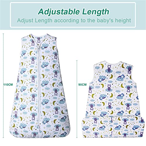 - Adjustable Length (Fit 90-110cm height): with fastening tape on the back, which can adjust the length of the sleeping bag according to the baby's growth, suitable for 18-36 months baby boys and girls. Please measure the baby's height and neckline size before purchasing for our sleeping bag.Avoid buying a big sleeping bag and cause the baby to wear inappropriately or cause safety problems