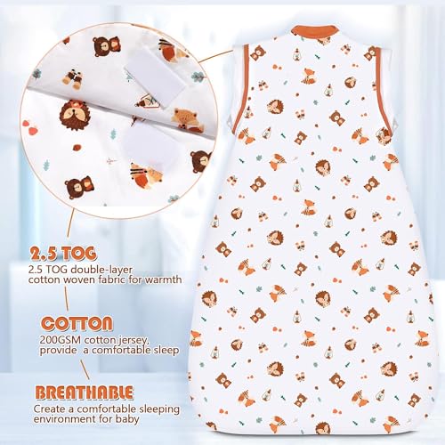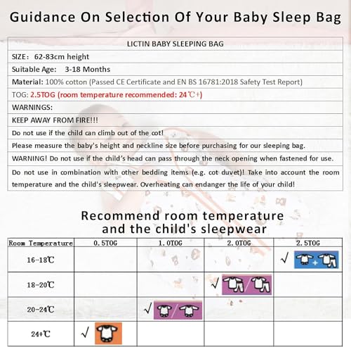 - Pure Organic Cotton: The sleeping bag is filled with 2.5TOG of organic cotton fabric, which reduces the risk of allergies while providing extremely high comfort and warmth, creating a comfortable baby sleeping environment in winter. (Note: Please confirm the appropriate size before buying)