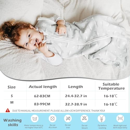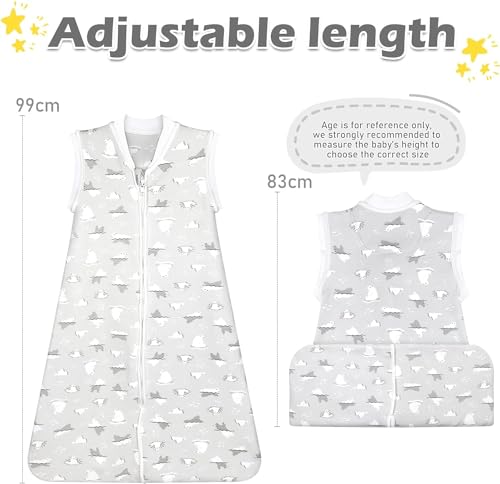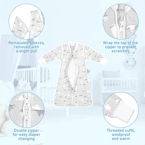 Lictin Baby Sleeping Bag 3-18 Months, 100% Cotton TOG 2.5 Baby Wearable Blanket Winter with Removable Sleeves, Sleeping Sack with Adjustable Length for Infant Toddler Baby