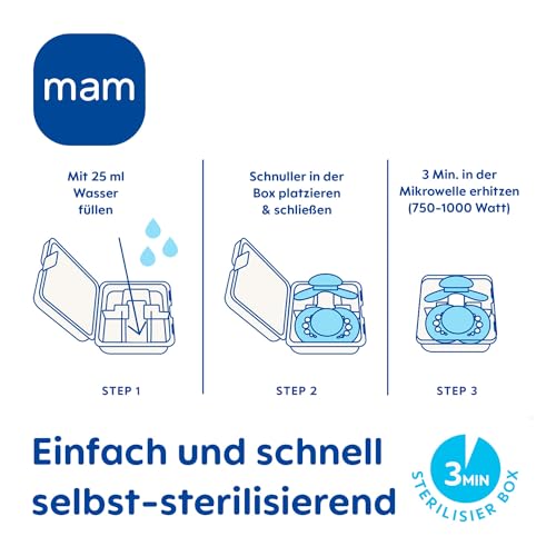 Dummy set of 6 consisting of 6 MAM silicone dummies: 4 x MAM silicone original with cute motifs, 2 x MAM silicone night – glows in the dark. Symmetrical teat with special silk teat silicone – particularly soft in baby’s mouth. Includes sterilised transport boxes