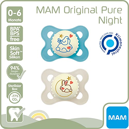 - 2 x MAM Original Night Silicone (glow in the dark) 0-6