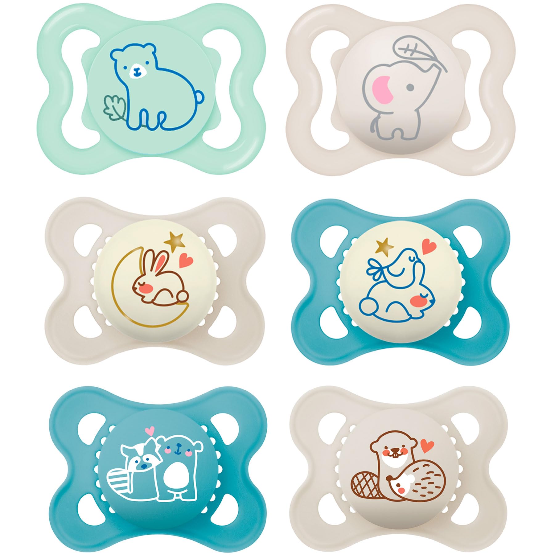 MAM Day and Night Silicone Dummies 0-6 Months Pack of 6 Boys